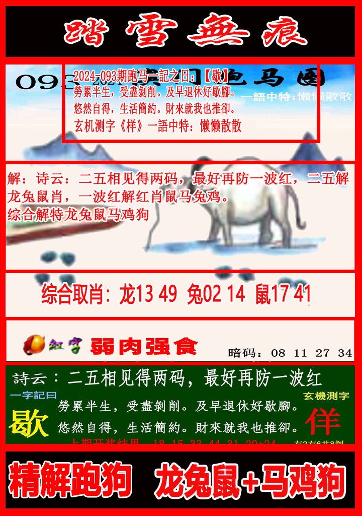 091期: 精准四肖 【狗鸡鼠马】 开37马