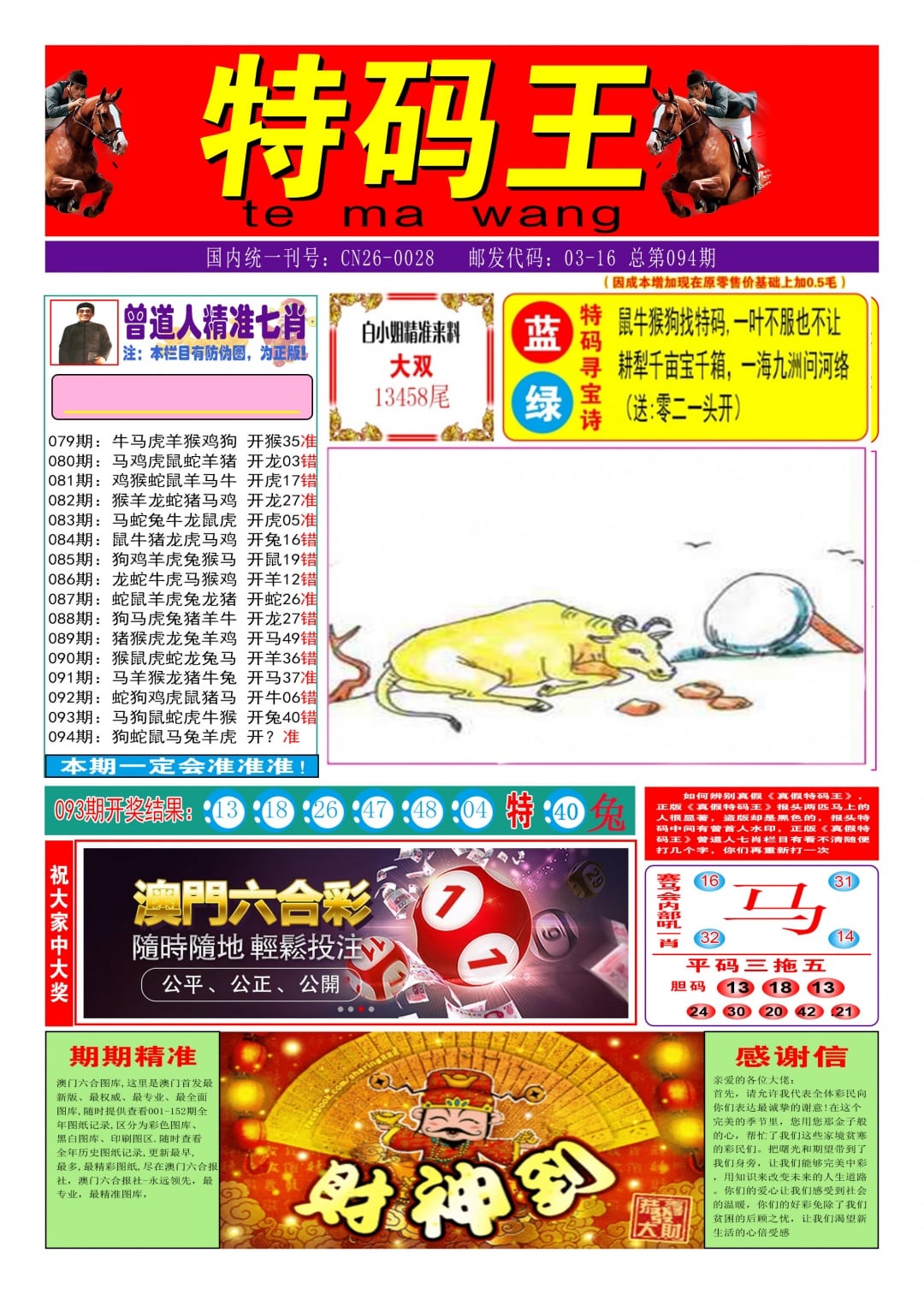 094期 平特一肖 :【马马马】开 ?? 准